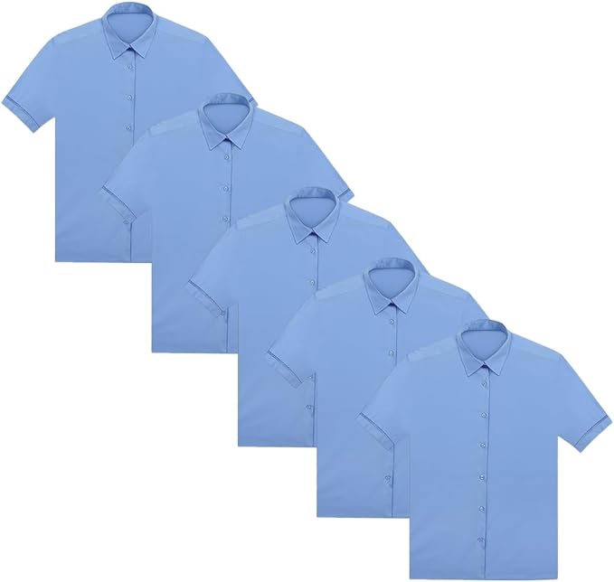 5 Pack Girls School Shirt Sky Blue & White – Half Sleeve