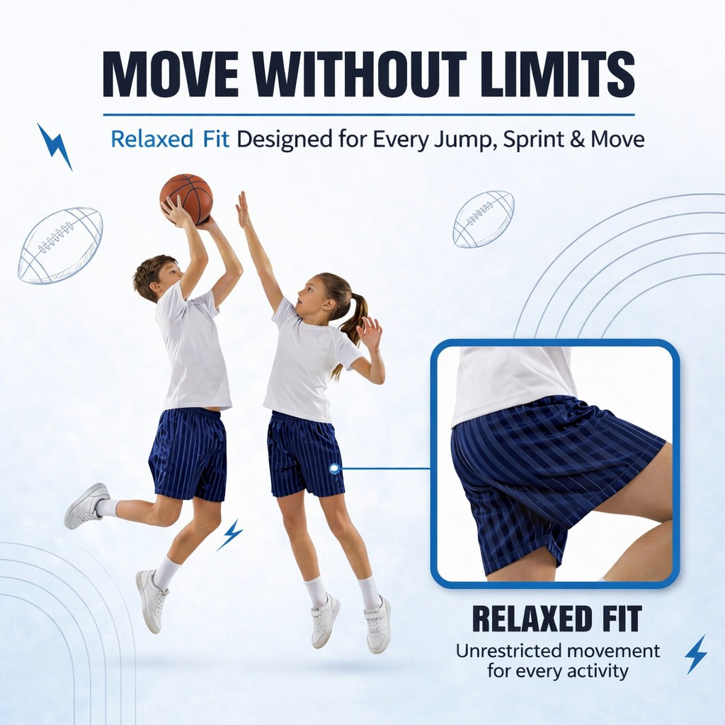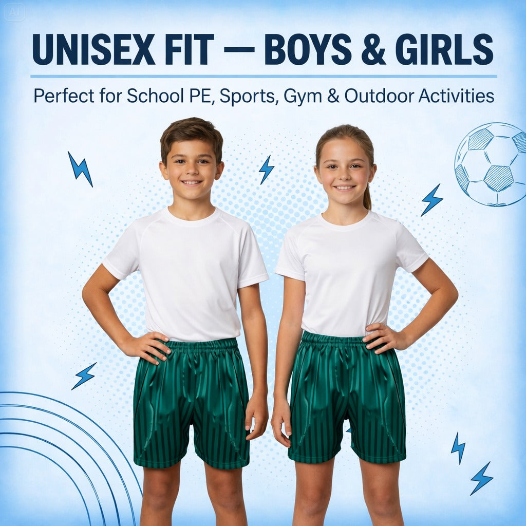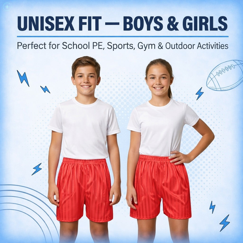 Shop kids shadow stripe PE shorts designed for comfort, flexibility and active school days. Lightweight and durable, these unisex sports shorts are perfect for PE, training and everyday movement.