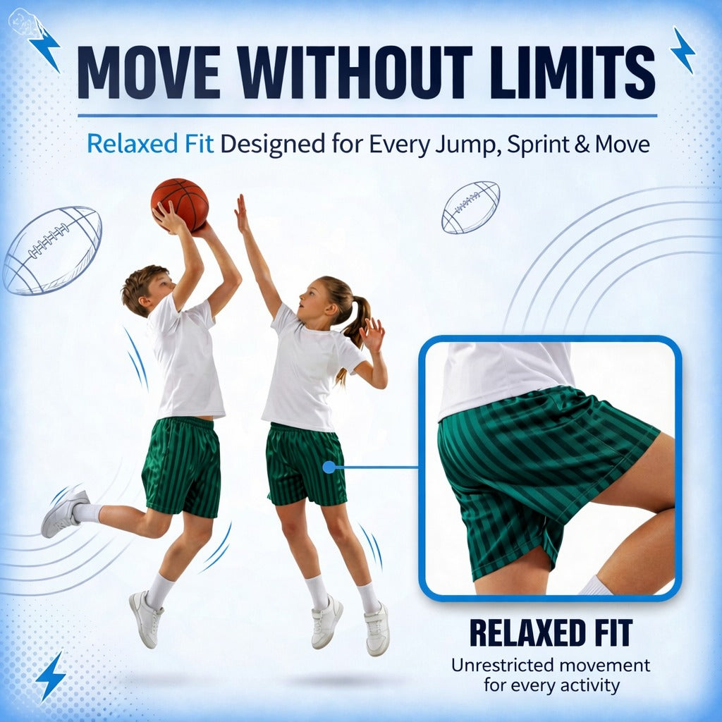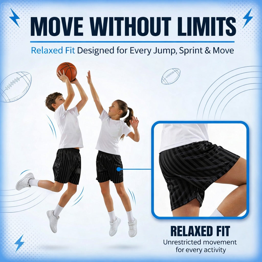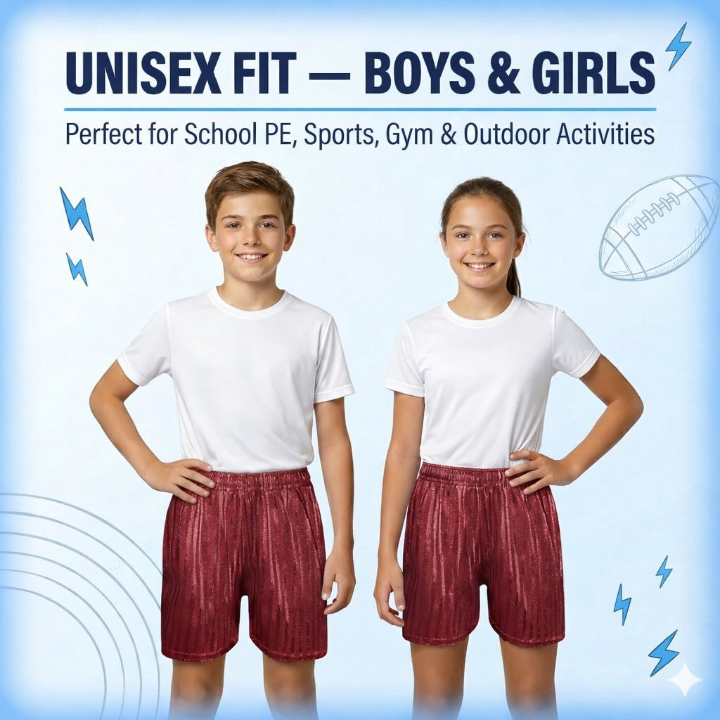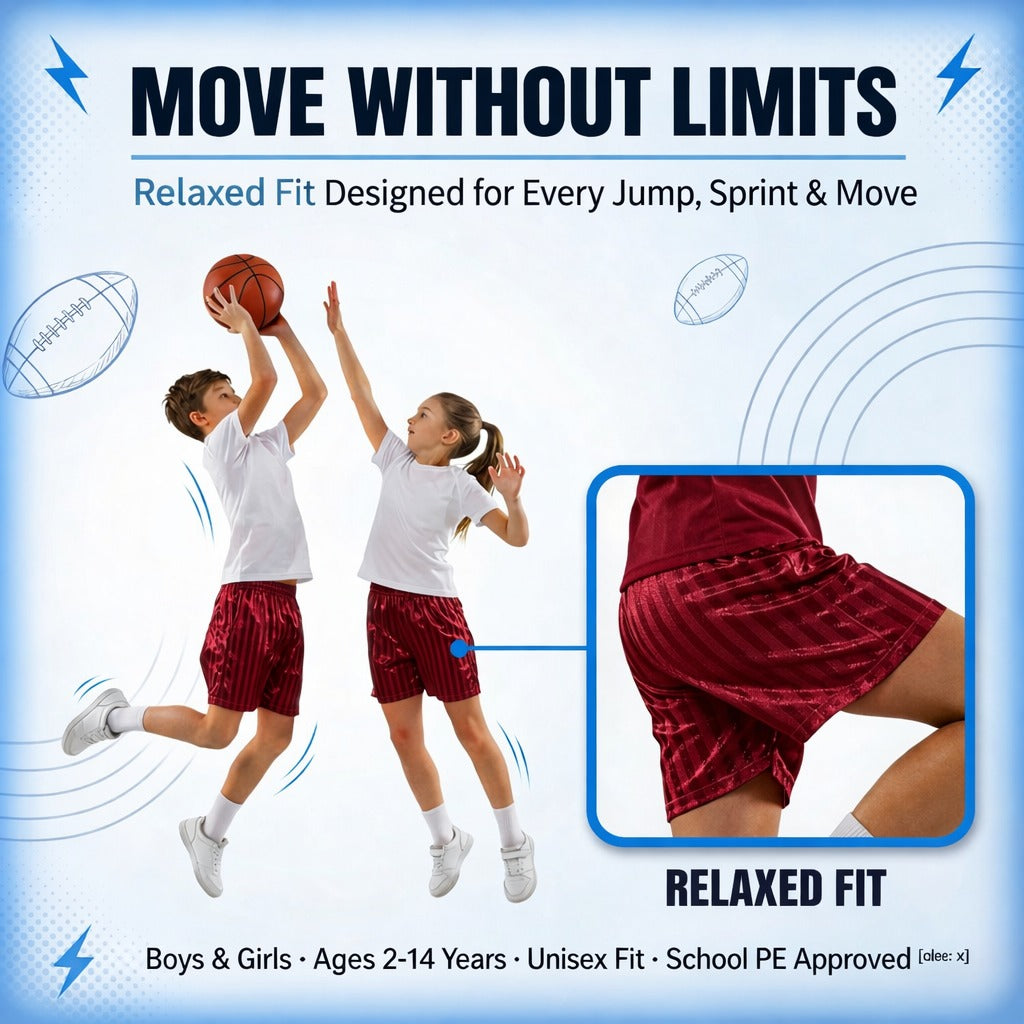 Shop kids shadow stripe PE shorts designed for comfort, flexibility and active school days. Lightweight and durable, these unisex sports shorts are perfect for PE, training and everyday movement.