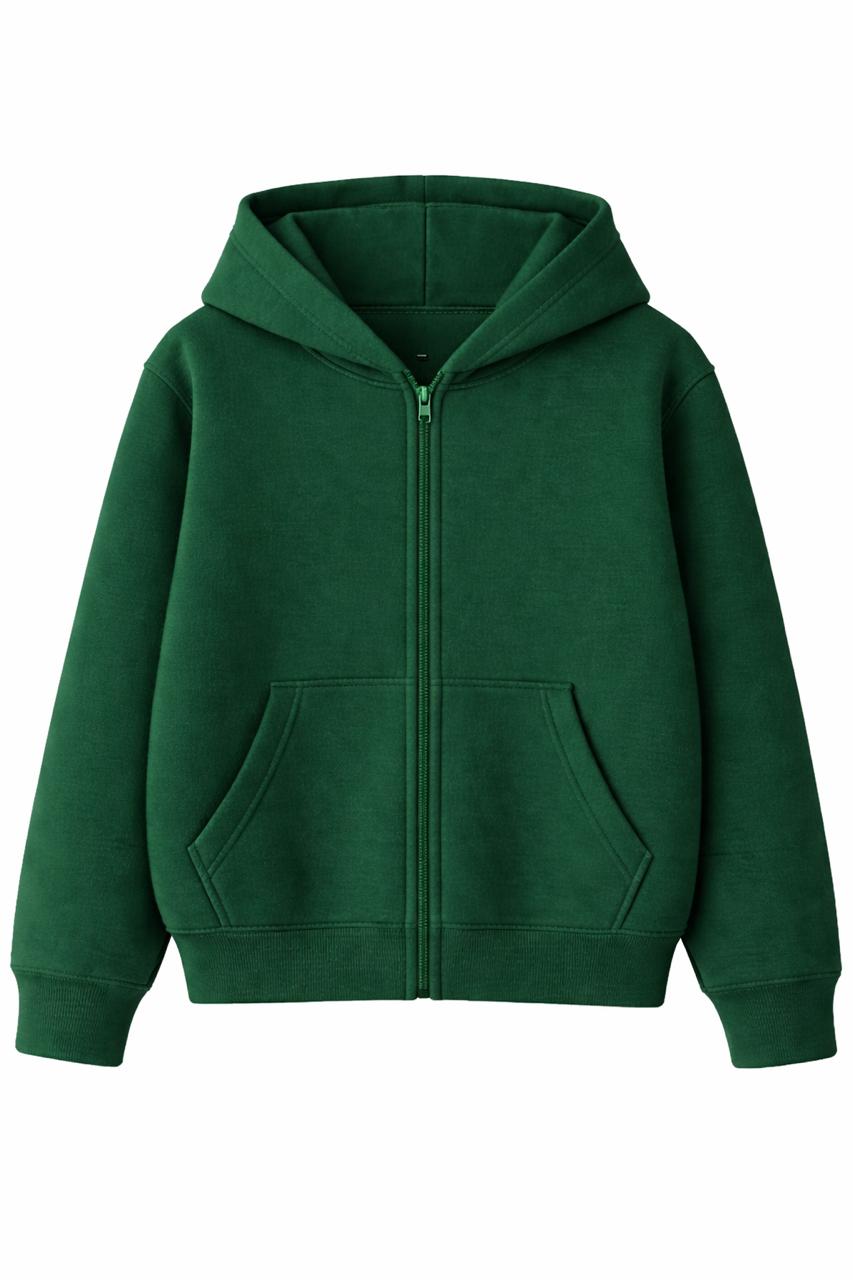 Kids Fleece Plain Zipper Hoodie Green – Boys & Girls