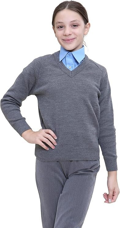 Girls School V-Neck Sweater Grey– Full Sleeve